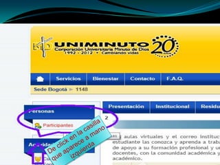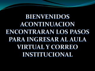 El documento provee instrucciones paso a paso para acceder a la plataforma de aprendizaje en línea, modificar la información personal del usuario, subir una fotografía de perfil, acceder al correo institucional, personalizar la firma de correo, participar en foros de discusión, y acceder a aplicaciones de productividad como Word y Excel.