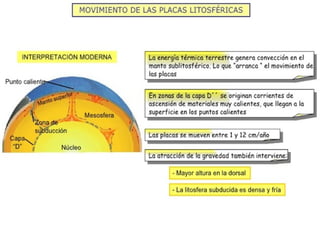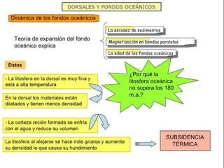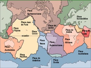 Este documento presenta la información sobre el tema 9 de geología del 2o curso de bachillerato. Explica los contenidos sobre tectónica de placas, incluyendo las placas litosféricas actuales, orógenos antiguos y actuales, y la relación entre tectónica de placas y otros aspectos geológicos. También describe la historia de la Tierra y el desarrollo de la teoría de placas, así como los estándares de aprendizaje evaluables relacionados con este tema.