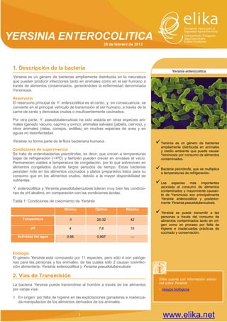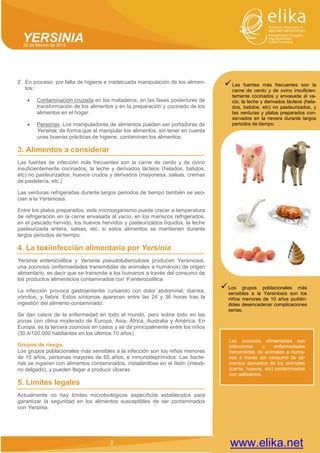 Yersinia es un género de bacterias que puede causar Yersiniosis, una zoonosis transmitida principalmente por el consumo de carne de cerdo y derivados lácteos no pasteurizados contaminados con Yersinia enterocolitica o Yersinia pseudotuberculosis.
