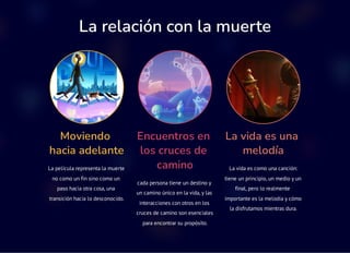 La película presenta la muerte como una transición hacia lo desconocido en lugar de un fin. Enfatiza la importancia de las interacciones en la búsqueda del propósito personal y destaca que la vida es una melodía que se debe disfrutar. Además, enfatiza la necesidad de apreciar los momentos simples y aprender a perder para hallar nuestro verdadero propósito.