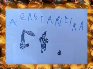 Este kamishibai cuenta la historia de una castañera que vive en una casa en la montaña. Un día de otoño, la castañera se levanta, se viste y sale con su cesta hacia el bosque para recoger castañas. Al llegar al bosque, ve castañas por todas partes pero no caen de los árboles. De repente, empieza a soplar un fuerte viento y las castañas caen al suelo, permitiendo que la castañera llene su cesto. Muy contenta, lleva las castañas a la