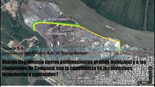 El documento habla sobre la expropiación de tierras pertenecientes a la Sociedad Anónima Frigorífico Anglo ubicadas entre varias calles de la ciudad de Campana, en la provincia de Buenos Aires. La ley 5194 establece que el Poder Ejecutivo expropiará esas tierras con el fin de ampliar la planta urbana de Campana. El plan deberá reservar una faja de terreno de hasta 35 metros de ancho a lo largo del río Paraná de las Palmas y el arroyo del Potrero para continuar la Aven