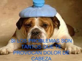 El documento habla sobre cómo alguien que está pasando por muchos problemas y siente dolor de cabeza y que su vida pende de un hilo, debería hacer una pausa, meditar en las cosas buenas que tiene como amigos y familia que lo aman, sacudir los pensamientos negativos y confiar en que Dios es su aliado.