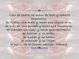 El documento propone no llamar adversidad a las caídas y fracasos de la vida, sino sabiduría, y no llamar castigo a los cambios de planes sino enseñanza. También sugiere no ver la rutina diaria como tal, sino como experiencia valiosa, y no considerar las capacidades humanas como mero poder sino como milagro divino. Finalmente invita a no ver el cariño entre amigos como casualidad sino como amistad.