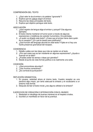 El texto es una carta dirigida a una persona violenta y agresiva llamada "Cabeza Rapada" con el objetivo de convencerlo de que la violencia no resuelve los problemas y de que la ignorancia es la raíz de la agresividad. Le aconseja cultivar su mente a través de la lectura y el pensamiento crítico en lugar de recurrir a la fuerza física. Advierte que de lo contrario podría acabar en la cárcel o siendo manipulado por otros con poder.