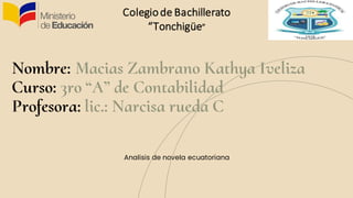 Este documento resume la novela ecuatoriana "A la Costa" de Luis Alfredo Martínez. Narra la historia de la familia Ramírez, compuesta por el doctor Jacinto Ramírez, su esposa Camila y sus hijos Salvador y Mariana. Salvador estudia leyes y conoce a su amigo Luciano, mientras que Mariana se enamora de Luciano, a pesar de la oposición de su madre Camila debido a las diferencias sociales. La novela describe las vidas de los personajes y las tensiones sociales y políticas de la época a través