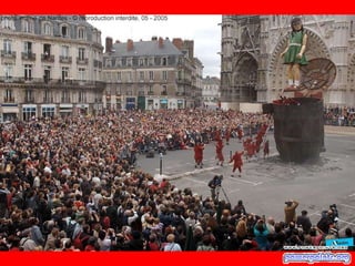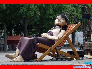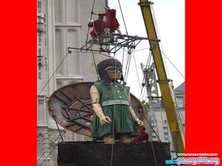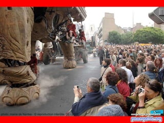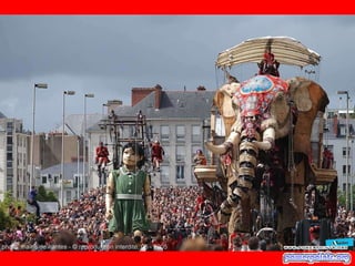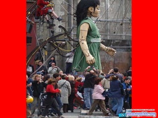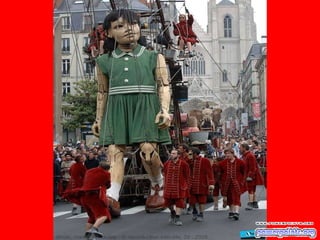 Este documento habla sobre una compañía francesa de teatro llamada "Royal de Luxe" y su obra "La pequeña Gigante Gracias Lucia". El autor tuvo la suerte de conocer a esta compañía hace dos años cuando pasaron por su país. Recomienda ver esta obra si se tiene la oportunidad porque es una presentación espectacular.