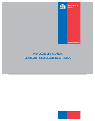 Este documento presenta un protocolo de vigilancia de riesgos psicosociales en el trabajo en Chile. Describe los efectos negativos de la exposición a estos riesgos, como problemas de salud física y mental. Propone un modelo de prevención que incluye intervenciones primarias, secundarias y terciarias. Revisa antecedentes epidemiológicos nacionales sobre factores de riesgo validados. Finalmente, detalla el alcance del protocolo y los instrumentos definidos, como un cuestionario y una herramienta de evaluación de medidas