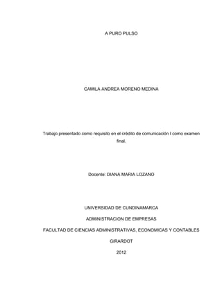 Este documento presenta la historia de María de Chávez, creadora y propietaria de la empresa de cosméticos Jolie de Vogue. Comenzó preparando esmaltes para uñas en un garaje y ahora emplea a más de 1.050 personas con cobertura nacional e internacional. Relata la historia de superación de María, quien a pesar de enfrentar dificultades nunca se rindió y logró cumplir su sueño de crear una exitosa empresa. El documento también incluye objetivos, ensayos, ideas, personajes y otros elementos