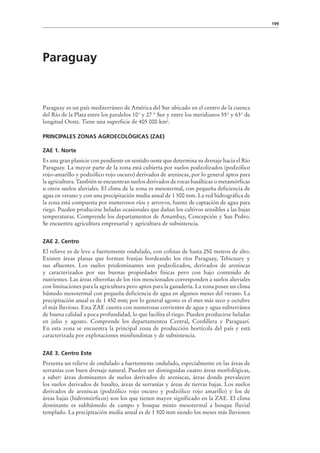El documento describe las principales zonas agroecológicas de Paraguay, dividiéndolas en 8 zonas. Resume las características de cada zona en términos de relieve, suelos, clima y principales cultivos. También enumera los principales cultivos del país y las zonas agroecológicas donde se producen.
