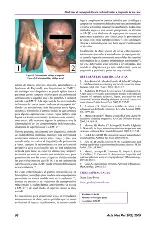 Este documento presenta el caso de una mujer de 32 años que fue diagnosticada inicialmente con esclerodermia sistémica hace cuatro años. Luego de una complicación infecciosa, se le diagnosticó también lupus eritematoso sistémico y polimiositis, conocido como síndrome de superposición. El documento discute las características de la esclerosis sistémica y su rara evolución a otras enfermedades autoinmunes, así como las diferencias entre síndrome de superposición y enfermedad mixta del tejido conectivo.