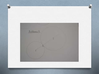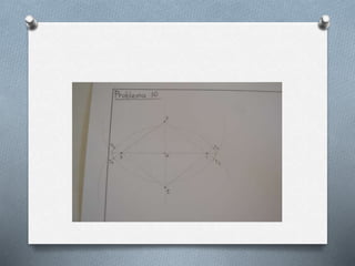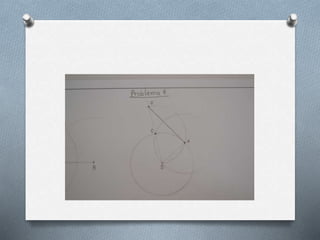 El documento presenta una lista de 11 problemas de geometría que involucran trazar mediatrices, tangentes, circunferencias, elipses y espirales. Los problemas van desde trazar la mediatriz de un segmento hasta dibujar espirales de ejes múltiples con crecimiento áureo. El documento también incluye láminas de trabajo para los problemas.