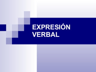 El documento trata sobre la expresión verbal. Explica que la expresión verbal es el acto de comunicar ideas, opiniones, estados de ánimo u otros mensajes a través del lenguaje. Para hablar correctamente se requiere comunicarse con dicción, fluidez, volumen, ritmo, claridad y coherencia. Luego describe diferentes formas de expresión oral como conversaciones, diálogos, entrevistas, debates y conferencias.