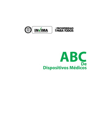 Este documento presenta una guía sobre dispositivos médicos producida por el Instituto Nacional de Vigilancia de Medicamentos y Alimentos de Colombia (INVIMA). La guía define qué son los dispositivos médicos, explica su clasificación de riesgo y los requisitos para su registro sanitario. Además, detalla los requerimientos para equipos biomédicos de tecnología controlada y cubre temas como empaque, etiquetado, publicidad e importación temporal de dispositivos médicos. El objetivo es orientar a establecimientos sobre los tr