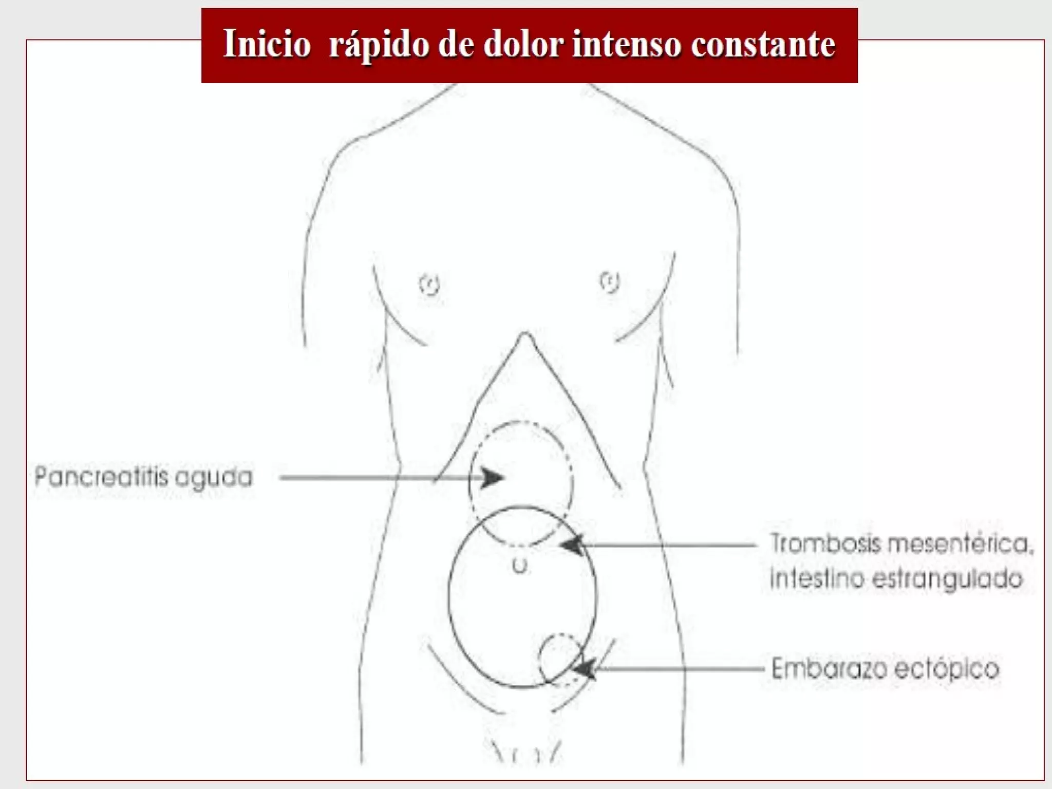Este documento describe el abdomen agudo, definido como un síndrome caracterizado por dolor abdominal agudo que puede requerir tratamiento quirúrgico urgente. Explica los periodos, exámenes físicos, tipos de dolor, diagnósticos clínicos y clasificaciones del abdomen agudo. También detalla los exámenes complementarios comunes y enfatiza la importancia de la observación clínica del paciente.