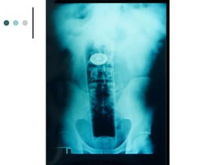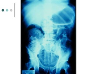 Este documento describe el abdomen agudo quirúrgico y sus principales síndromes y causas. Puede presentarse como un síndrome peritonítico inflamatorio debido a afecciones como la apendicitis aguda o la colecistitis aguda, o como un síndrome perforativo por una úlcera gastroduodenal perforada. Los exámenes complementarios como la radiografía, ecografía, tomografía computarizada y punción abdominal pueden ayudar al diagnóstico, y en algunos casos se requiere una laparotomía exploratoria para determin