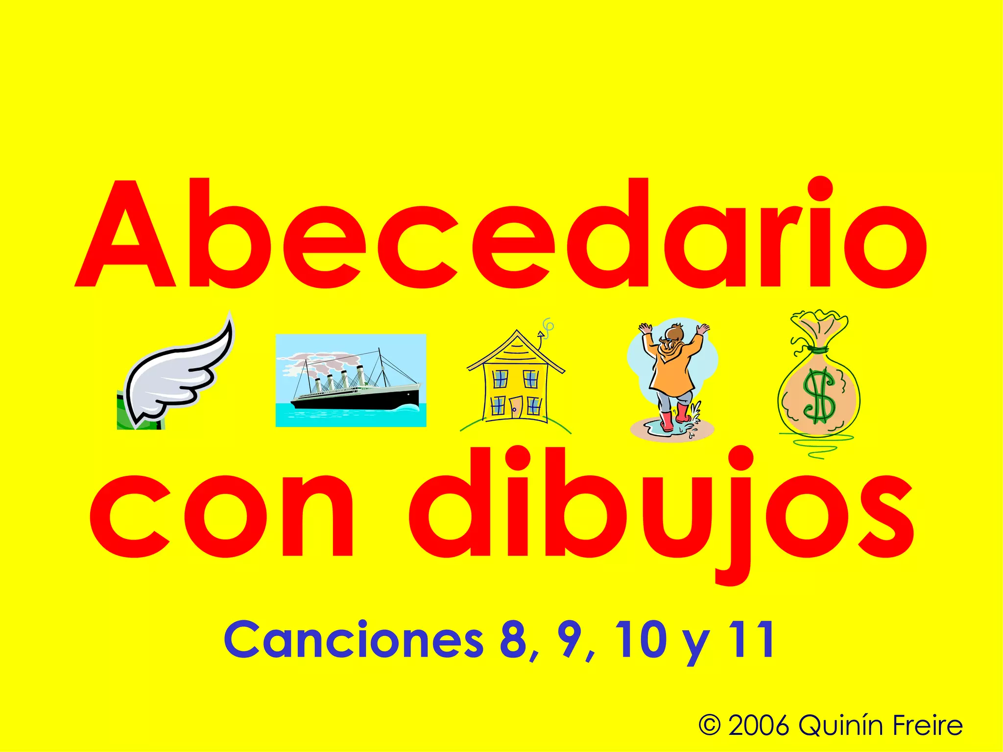 Este documento presenta el abecedario español con dibujos que representan cada letra mayúscula y minúscula, además de incluir oraciones de ejemplo con las letras para practicar la pronunciación.