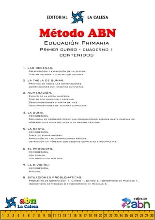 Este documento presenta varias lecciones sobre números y operaciones matemáticas básicas como sumar y descomponer números en decenas. Incluye ejercicios para que los estudiantes practiquen conceptos como sumar números hasta 10, componer y descomponer decenas, y resolver problemas aritméticos sencillos que involucran la suma de cantidades. El documento utiliza imágenes como palillos para representar números de una manera visual.