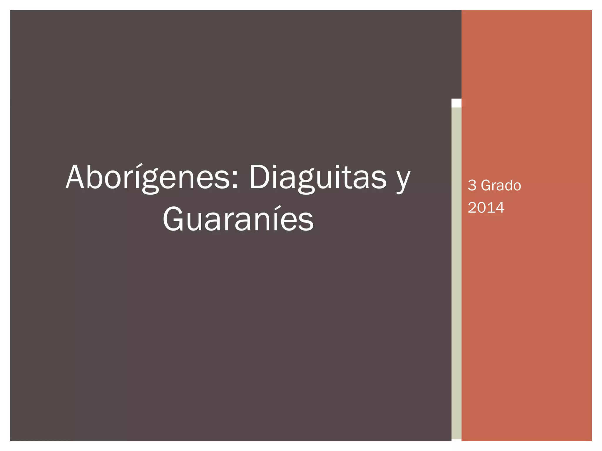 Los estudiantes aprendieron sobre los pueblos originarios Diaguitas y Guaraníes que habitaron la Argentina. Observando imágenes y visitando un museo, analizaron su forma de vida incluyendo la alimentación, vivienda, vestimenta, creencias y organización social. También investigaron el significado de los términos nómades y sedentarios y ubicaron las comunidades en un mapa.