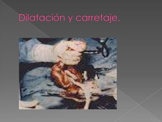 El documento define el aborto y explica sus diferentes tipos, incluyendo aborto espontáneo, inducido legal e ilegal. También discute los aspectos físicos y psicológicos del aborto y las etapas del proceso de sufrimiento por una pérdida.