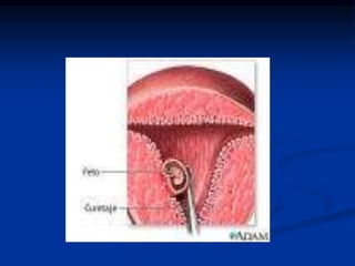 Este documento define el aborto como la interrupción de la gestación antes de las 20 semanas o cuando el feto pese menos de 500 gramos. Explica que puede ser espontáneo o provocado y clasifica los abortos como tempranos o tardíos. Además, identifica las posibles causas del aborto espontáneo como factores ovulares, anormalidades cromosómicas, defectos de la placenta e infecciones. Finalmente, describe los diferentes tipos, formas clínicas y complicaciones del aborto, así como los métodos quirúrgicos y mé