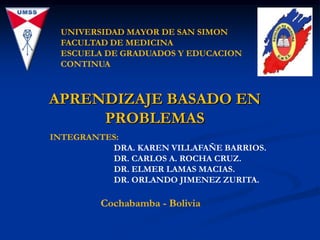 Este documento describe el aprendizaje basado en problemas (ABP), un método educativo centrado en la resolución de problemas. Explica que el ABP comienza con la presentación de un problema a los estudiantes, quienes trabajan en equipos para resolverlo mediante la discusión y la investigación. Luego detalla los siete pasos del proceso del ABP, incluida la clarificación de conceptos, definición del problema, análisis, búsqueda de información y presentación de conclusiones. Finalmente, destaca algunas ventajas del ABP como mayor