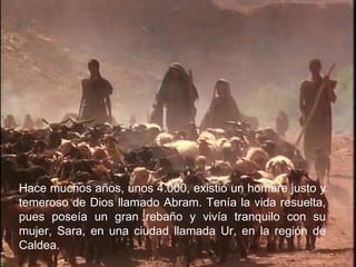 Abraham, llamado originalmente Abram, fue elegido por Dios para fundar un gran pueblo. Dios le pidió que dejara su tierra y viajara a Canaán, prometiéndole numerosa descendencia a pesar de que él y su esposa Sara eran ancianos e infértiles. Más tarde, Dios puso a prueba la fe de Abraham al ordenarle sacrificar a su hijo Isaac, aunque finalmente lo detuvo. La obediencia y fe de Abraham en las promesas de Dios a pesar de las dificultades lo convirtieron