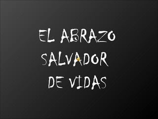El documento describe los beneficios físicos y emocionales de los abrazos. Los abrazos nos hacen sentir protegidos, seguros y fortalecidos, aliviando el dolor, la depresión y la ansiedad. Se necesitan al menos cuatro abrazos al día para sobrevivir, ocho para mantenerse y doce para crecer como personas.