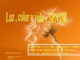Este documento es una adaptación musical dedicada a Luz Casal por haber superado su enfermedad y a otros que luchan contra enfermedades. Alienta a abrirse a nuevas perspectivas, dejar atrás los contratiempos, vivir cada momento intensamente y creer que aún queda tiempo para cambiar el destino.