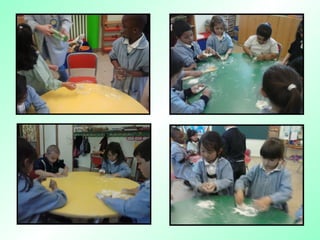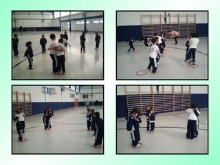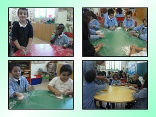 El documento resume las actividades realizadas por un grupo de niños de 3o de infantil durante el mes de abril. Hicieron presentaciones sobre sus mascotas, aprendieron sobre el artista Giuseppe Arcimboldo, leyeron cuentos, hicieron manualidades con flores, trabajaron los polígonos, jugaron y bailaron.