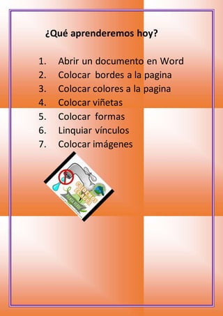Aprenderemos a formatar documentos en Word agregando bordes, colores y viñetas a las páginas, y también insertando formas, vínculos e imágenes.