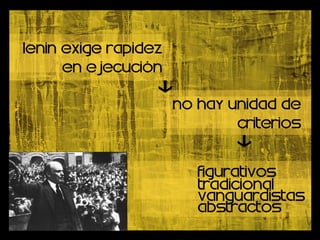 Este documento lista obras de arte de varios artistas pioneros del arte abstracto y no objetivo como Wassily Kandinsky, Johannes Itten, Paul Klee, László Moholy-Nagy, El Lissitzky y Vladimir Tatlin. Las obras incluyen pinturas, dibujos y collages creados entre 1912 y 1936 que exploraron formas no figurativas y nuevas técnicas.