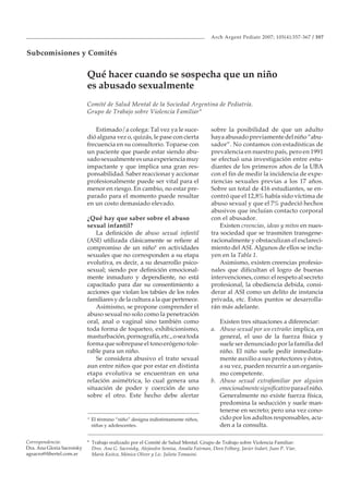 Este documento describe el abuso sexual infantil, incluyendo definiciones, factores de riesgo, efectos en los niños, y configuraciones familiares que lo facilitan. Explica que el abuso sexual es cualquier actividad sexual inapropiada para la edad del niño y que puede ocurrir dentro o fuera de la familia. También describe las creencias erróneas comunes sobre el abuso sexual y los desafíos en la detección y tratamiento, especialmente en casos de abuso intrafamiliar donde se mantiene en secreto.