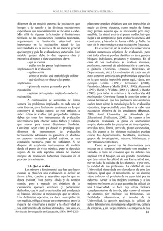 Este artículo analiza los problemas metodológicos involucrados en la evaluación universitaria. Argumenta que una evaluación integral requiere un modelo general que guíe las evaluaciones específicas de investigación, docencia y gestión. Señala que los instrumentos de medida deben ser fiables y válidos para generar diagnósticos precisos que permitan planes de mejora basados en datos. Finalmente, discute los pasos necesarios para construir instrumentos de medida rigurosos en el contexto de la evaluación universitaria.