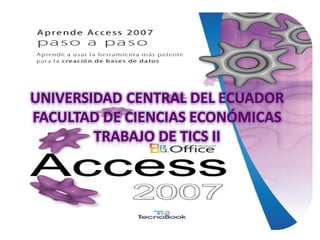 El documento explica cómo crear y modificar tablas de datos en Microsoft Access. En primer lugar, se describe el proceso de creación de una tabla mediante la definición de campos, tipos de datos y clave principal. Luego, se explican diversas operaciones de modificación de tablas existentes, como cambiar el ancho de columnas, ordenar registros, agregar y eliminar registros, y cambiar el alto de filas. El documento proporciona instrucciones paso a paso con capturas de pantalla para llevar a cabo estas tareas.