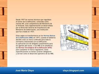 El documento aborda la evolución de la normativa en el sector de la edificación en España, destacando la Ley 38/1999 y el Código Técnico de la Edificación, que establecen requisitos de seguridad, habitabilidad y accesibilidad. Se enfatiza la integración de condiciones básicas de accesibilidad para personas con discapacidad en el marco normativo, actualizándose las exigencias y eliminando regulaciones menos estrictas. El CTE busca mejorar la calidad de la edificación y facilitar la innovación en el sector, promoviendo la accesibilidad universal y una respuesta a las necesidades sociales.
