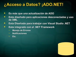 ¿Acceso a Datos?¡ADO.NET!