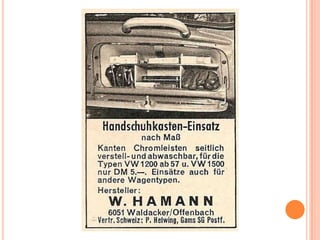 Esta es un recopilación de imágenes que he guardado con mucho cuidado de algunos accesorios para volkswagen de la época cuando eran nuevos. Algunos bastante extraños y desconocidos, espero les guste.