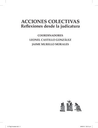 Este documento presenta una introducción a las acciones colectivas en México. Explica que la reforma constitucional de 2010 y la posterior reforma legal de 2012 establecieron las acciones colectivas para proteger derechos difusos y colectivos. Luego, analiza las diferencias entre acciones colectivas, populares y de grupos, y examina el origen y evolución de las acciones colectivas. Finalmente, describe los derechos e intereses que tutelan las acciones colectivas.