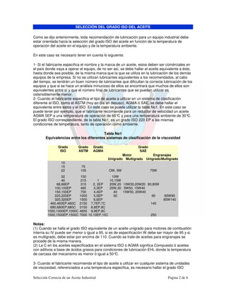 2) Es importante consultar las recomendaciones del fabricante del equipo, las cuales incluyen el grado ISO del aceite requerido.