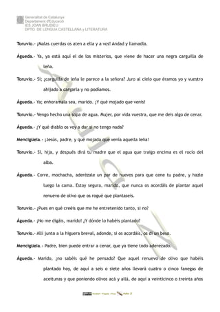 Toruvio y su esposa Águeda discuten sobre el precio al que su hija Mencigüela debería vender las aceitunas de un olivar que Toruvio acaba de plantar. Toruvio cree que debería venderse a 15 dineros el celemín mientras que Águeda insiste en que debería ser a 2 reales castellanos. Su vecino Aloja interviene para calmarlos y se da cuenta de lo absurdo de la discusión ya que las aceitunas todavía no están listas para cosecharse.