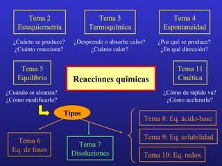 El documento proporciona un resumen de los principales temas relacionados con las reacciones ácido-base, incluyendo definiciones de ácidos y bases según Arrhenius, Brønsted-Lowry y Lewis, la autoionización del agua y la escala de pH, la fuerza de ácidos y bases y sus constantes de ionización, el tratamiento de los equilibrios de ionización, la hidrólisis de sales, las disoluciones amortiguadoras y los indicadores.