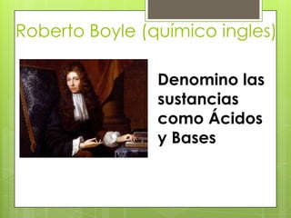 Este documento describe la teoría de ácidos y bases según el químico sueco Svante Arrhenius. Explica que Arrhenius definió los ácidos como sustancias que se disocian en iones hidrógeno cuando se disuelven en agua, y las bases como sustancias que forman iones hidroxilo al disolverse. También proporciona ejemplos como el ácido clorhídrico que se disocia en iones hidrógeno y cloruro, y la reacción neutralizante entre un ácido y una