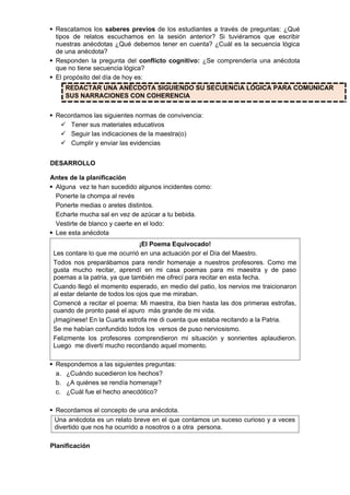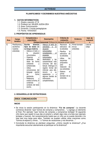 PLANIFICAMOS Y ESCRIBIMOSNUESTRAS ANÉCDOTAS