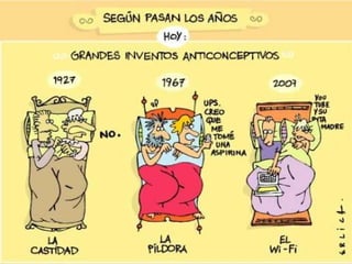 Este documento describe diferentes métodos anticonceptivos, su historia, mecanismos de acción y eficacia. Explica que los anticonceptivos hormonales combinados son los más utilizados y recomendados, especialmente los de baja dosis. También cubre contraindicaciones absolutas y relativas para el uso de anticonceptivos hormonales.