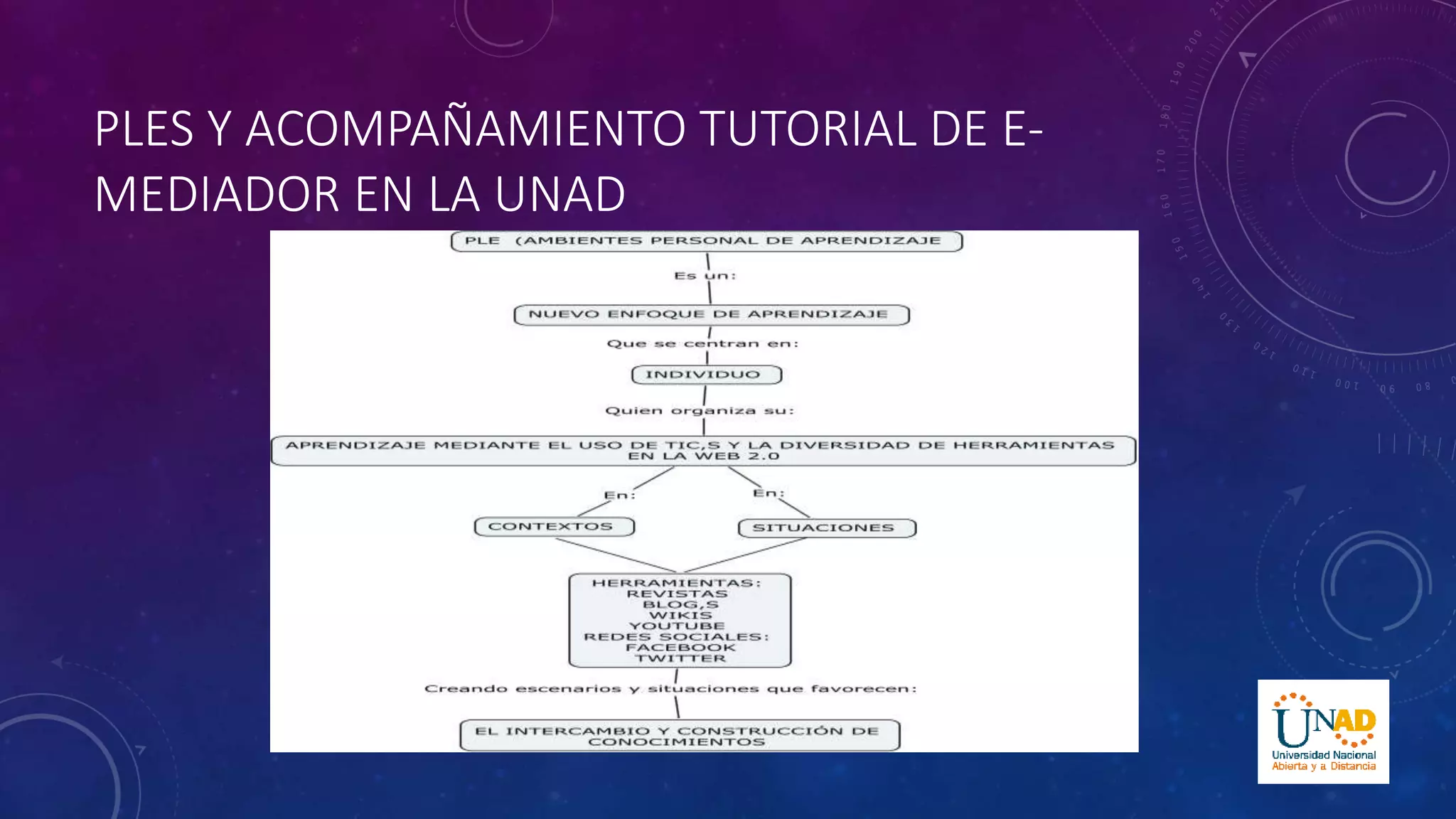 Este documento describe el papel del tutor o e-mediador en la Universidad Nacional Abierta y a Distancia de Colombia. Explica que el e-mediador debe cambiar su rol de docente tradicional a uno que utilice pedagogías basadas en TIC para enfocarse en las necesidades del estudiante. También enumera las funciones del e-mediador como diseñador de currículos, proveedor de contenidos, tutor, consultor de información, colaborador en grupo y facilitador del aprendizaje. Finalmente, resalta elementos como la autogestión del conocimiento,
