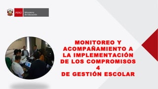 Este documento propone un protocolo de monitoreo y acompañamiento a docentes que incluye definir monitoreo y acompañamiento, establecer compromisos de gestión escolar, proponer una estrategia con visitas al aula, etapas antes, durante y después, formar comunidades de aprendizaje e instrumentos como cuadernos de campo y fichas. El objetivo es estandarizar procedimientos e instrumentos que permitan mejorar la práctica docente a través del monitoreo y acompañamiento.