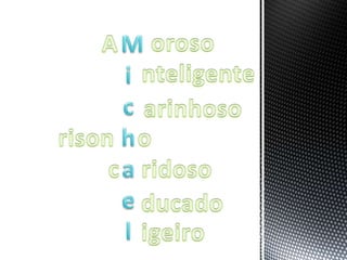 El documento describe un animal inteligente, rápido, ágil, elegante y experto que es estudioso, atento e inteligente.
