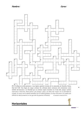 Este documento presenta un acróstico y crucigrama relacionados con diferentes nombres y títulos que se le daban a Jesucristo en la Biblia. Proporciona claves para resolver el acróstico y crucigrama a través de citas bíblicas. Anima a los estudiantes a participar en la actividad.