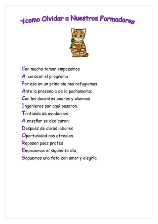 El documento habla sobre la implementación de computadores en la educación. Se menciona la ansiedad y alegría de enseñar a los estudiantes a usar computadores y crear un blog institucional. También se detalla el proceso de aprendizaje de los docentes sobre programas informáticos con la ayuda de ingenieros, a pesar del temor inicial, con el objetivo de mejorar la enseñanza.